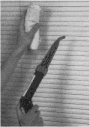 Cut through layers of wax and dirt with a brush wrapped in cloth. |
