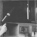 Cut through layers of wax and dirt with a brush wrapped in cloth. |